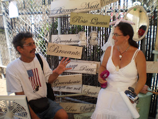 here rita is chatting with my hubby,it was about a month or two before he passed away. jim was determined to do all he could do and he so loved to talk with people. rita saw that the heat was a bit much for him and she sat him right down in her booth,faced a fan at him,and chatted up a storm with him! i don't know that i have ever told her,but that kindness on that hot summer day meant the world to me.